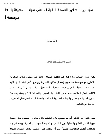 9/3/24, 5:10 PM 2 موﺗﻛﻣ لآ ﺔﺳﺳؤﻣ ﻊﻣ نوﺎﻌﺗﻟﺎﺑ ﺔﻓرﻌﻣﻟا بﺎﺑﺷ ﻰﻘﺗﻠﻣﻟ ﺔﯾﻧﺎﺛﻟا ﺔﺧﺳﻧﻟا قﻼطﻧا ..رﺑﻣﺗﺑﺳ