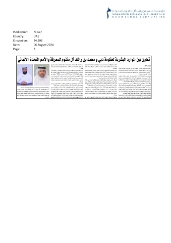 Publication: Al Fajr Country: UAE Circulation: 34,596 Date: 06 August 2024 Page: 3