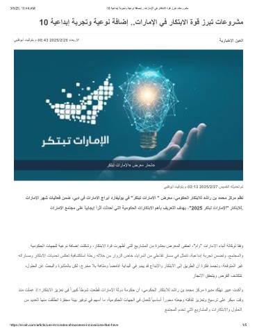 تارﺎﻣﻹا ﻊﻣﺗﺟﻣ ﻰﻠﻋ ًﺎﯾﺑﺎﺟﯾإ ًارﺛأ تﺛدﺣأ ﻲﺗﻟا ﺔﯾﻣوﻛﺣﻟا تارﺎﻛﺗﺑﻻا مھﺄﺑ فﯾرﻌﺗﻟا فدﮭﺑ ،"2025 رﻛﺗﺑﺗ تارﺎﻣﻹا" رﺎﻛﺗﺑﻼﻟ.