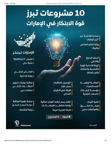 3/5/25, 11:44 AM 10 ﺔﯾﻋادﺑإ ﺔﺑرﺟﺗو ﺔﯾﻋوﻧ ﺔﻓﺎﺿإ ..تارﺎﻣﻹا ﻲﻓ رﺎﻛﺗﺑﻻا ةوﻗ زرﺑﺗ تﺎﻋورﺷﻣ https://al-ain.com/article/uae-innovates-showcases-innovations-that-have 3/5