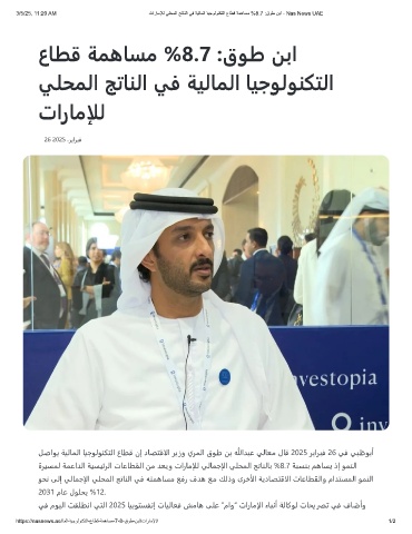 3/5/25, 11:20 AM تارﺎﻣﻺﻟ ﻲﻠﺣﻣﻟا ﺞﺗﺎﻧﻟا ﻲﻓ ﺔﯾﻟﺎﻣﻟا ﺎﯾﺟوﻟوﻧﻛﺗﻟا عﺎطﻗ ﺔﻣھﺎﺳﻣ %8.7 :قوط نﺑا - Nas News UAE