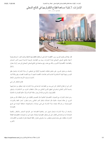 ﺔﺒﺴﻨﺑ ﻢھﺎﺴﯾ ذإ ،ﻮﻤﻨﻟا ﻞﺻاﻮﯾ ﺔﯿﻟﺎﻤﻟا ﺎﯿﺟﻮﻟﻮﻨﻜﺘﻟا عﺎﻄﻗ نإ ،ﻲﺗارﺎﻣﻹا دﺎﺼﺘﻗﻻا ﺮﯾزو ،يﺮﻤﻟا قﻮط ﻦﺑ ﷲﺪﺒﻋ لﺎﻗ