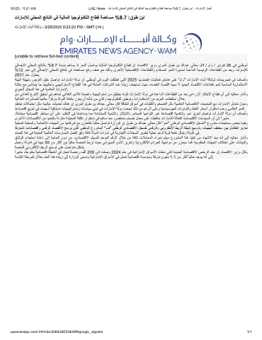 3/5/25, 11:21 AM UAE News - تارﺎﻣﻺﻟ ﻲﻠﺣﻣﻟا ﺞﺗﺎﻧﻟا ﻲﻓ ﺔﯾﻟﺎﻣﻟا ﺎﯾﺟوﻟوﻧﻛﺗﻟا عﺎطﻗ ﺔﻣھﺎﺳﻣ %8.7 :قوط نﺑا - تارﺎﻣﻹا رﺎﺑﺧأ