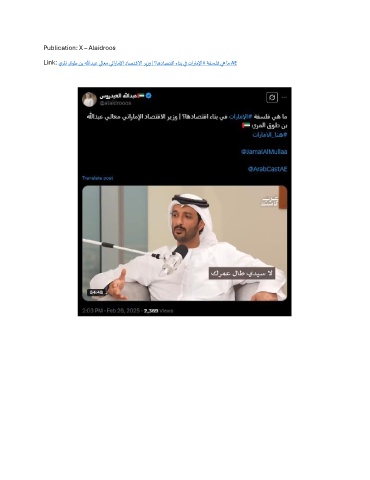 Publication: X – Alaidroos Link: يرلما قوط نب اللهدبع يلاعم يتاراملإا داصتقلاا ريزو | ؟اهداصتقا ءانب يف تاراملإا# ةفسلف يه ام