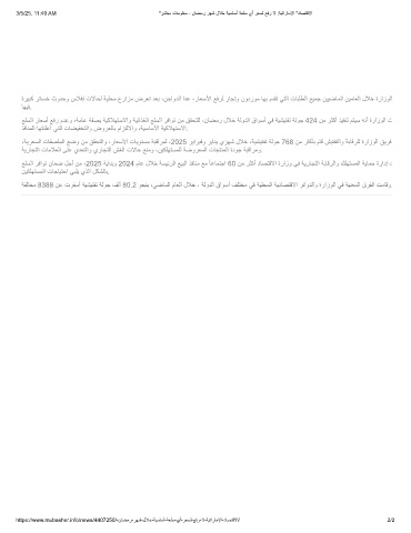 ،ﺔﯾرﻌﺳﻟا تﺎﻘﺻﻠﻣﻟا ﻊﺿو نﻣ ﻖﻘﺣﺗﻟاو ،رﺎﻌﺳﻷا تﺎﯾوﺗﺳﻣ ﺔﺑﻗارﻣﻟ ،2025 رﯾارﺑﻓو رﯾﺎﻧﯾ ي َ رﮭﺷ لﻼﺧ ،ﺔﯾﺷﯾﺗﻔﺗ ﺔﻟوﺟ 768 نﻣ رﺛﻛﺄﺑ مﺎﻗ شﯾﺗﻔﺗﻟاو ﺔﺑﺎﻗرﻠﻟ ةرازوﻟا ﻖﯾرﻓ