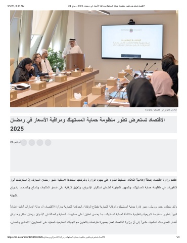 3/5/25, 9:35 AM 24 ﻊﻗوﻣ - 2025 نﺎﺿﻣر ﻲﻓ رﺎﻌﺳﻷا ﺔﺑﻗارﻣو كﻠﮭﺗﺳﻣﻟا ﺔﯾﺎﻣﺣ ﺔﻣوظﻧﻣ روطﺗ ضرﻌﺗﺳﺗ دﺎﺻﺗﻗﻻا