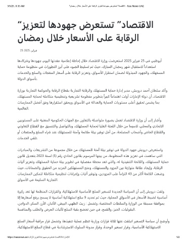 3/5/25, 9:35 AM "نﺎﺿﻣر لﻼﺧ رﺎﻌﺳﻷا ﻰﻠﻋ ﺔﺑﺎﻗرﻟا زﯾزﻌﺗﻟ ﺎھدوﮭﺟ ضرﻌﺗﺳﺗ "دﺎﺻﺗﻗﻻا - Nas News UAE