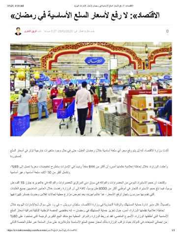 3/5/25, 9:38 AM «موﯾﻟا تارﺎﻣﻹا رﺎﺑﺧأ | نﺎﺿﻣر ﻲﻓ ﺔﯾﺳﺎﺳﻷا ﻊﻠﺳﻟا رﺎﻌﺳﻷ ﻊﻓر ﻻ :«دﺎﺻﺗﻗﻻا