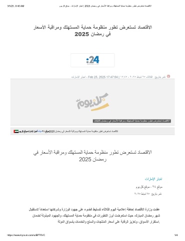 3/5/25, 9:40 AM موﯾ لﻛ ﻊﻗوﻣ - تارﺎﻣﻹا رﺎﺑﺧا | 2025 نﺎﺿﻣر ﻲﻓ رﺎﻌﺳﻷا ﺔﺑﻗارﻣو كﻠﮭﺗﺳﻣﻟا ﺔﯾﺎﻣﺣ ﺔﻣوظﻧﻣ روطﺗ ضرﻌﺗﺳﺗ دﺎﺻﺗﻗﻻا