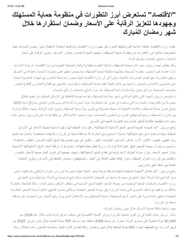 ثﯾﺣ ،كرﺎﺑﻣﻟا نﺎﺿﻣر رﮭﺷ لﺎﺑﻘﺗﺳﻻ ًادادﻌﺗﺳا ﺎﮭﺋﺎﻛرﺷو دﺎﺻﺗﻗﻻا ةرازو دوﮭﺟ ﻰﻠﻋ ءوﺿﻟا طﯾﻠﺳﺗﻟ موﯾﻟا ﺔﯾﻣﻼﻋإ ﺔطﺎﺣإ دﺎﺻﺗﻗﻻا ةرازو تدﻘﻋ