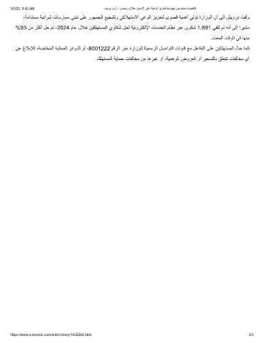 %93 نﻣ رﺛﻛأ لﺣ مﺗ ،2024 مﺎﻋ لﻼﺧ نﯾﻛﻠﮭﺗﺳﻣﻟا يوﺎﻛﺷ لﺣﻟ ﺔﯾﻧورﺗﻛﻟﻹا تﺎﻣدﺧﻟا مﺎظﻧ رﺑﻋ ىوﻛﺷ 1,891 ﻲﻘﻠﺗ مﺗ ﮫﻧأ ﻰﻟإ ارﯾﺷﻣ