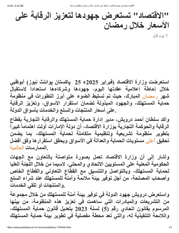 3/5/25, 9:42 AM ٹﻧﺋاوﺑ نﺎﺗﺳﮐﺎﺑ | نﺎﺿﻣر لﻼﺧ رﺎﻌﺳﻷا ﻰﻠﻋ ﺔﺑﺎﻗرﻟا زﯾزﻌﺗﻟ ﺎھدوﮭﺟ ضرﻌﺗﺳﺗ دﺎﺻﺗﻗﻻا
