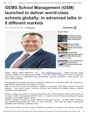 7/2/25, 1:56 PM GEMS School Management (GSM) launched to deliver world-class schools globally; in advanced talks in 8 different markets