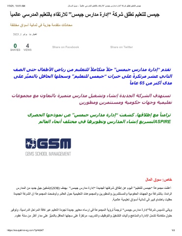 7/3/25, 10:01 AM                         لﺎـــﻣﻟا قوﺳ –  ً ﺎﯾﻣﻟﺎﻋ ﻲﺳردﻣﻟا مﯾﻠﻌﺗﻟﺎﺑ ءﺎﻘﺗرﻼﻟ ”سﻣﯾﺟ سرادﻣ ةرادإ“ ﺔﻛرﺷ ﻖﻠطﺗ مﯾﻠﻌﺗﻠﻟ سﻣﯾﺟ