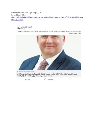 ر Publication: Facebook - يداصتقلإا شؤملا Date: 02 July 2025 Link: يف ةيراج ةمدقتم تاثداحم و ؛ ايملاع يسردملا ميلعتلاب ءاقترلال "سميج سرادم ةرادإ" ةكرش قلطت ميلعتلل سميج ةفلتخم قاوسأ ةينامث