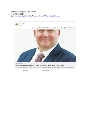 Publication: Facebook – Arqam TM Date: 02 July 2025 Link: ايملاع يسردملا ميلعتلاب ءاقترلال "سميج سرادم ةرادإ" ةكرش قلطت ميلعتلل سميج