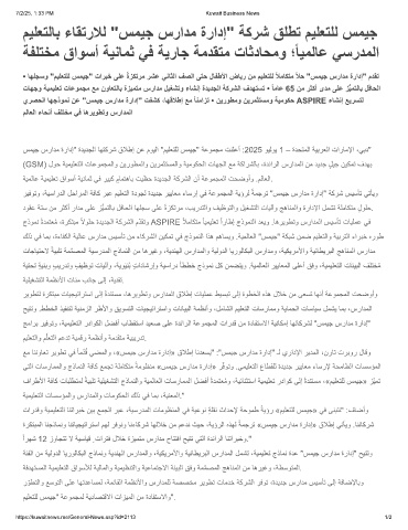سﻣﯾﺟ سرادﻣ ةرادإ" ةدﯾدﺟﻟا ﺎﮭﺗﻛرﺷ قﻼطإ نﻋ موﯾﻟا "مﯾﻠﻌﺗﻠﻟ سﻣﯾﺟ" ﺔﻋوﻣﺟﻣ تﻧﻠﻋأ :2025 وﯾﻟوﯾ 1 – ةدﺣﺗﻣﻟا ﺔﯾﺑرﻌﻟا تارﺎﻣﻹا ،ﻲﺑد"