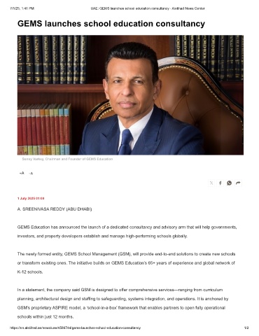 7/1/25, 1:41 PM UAE: GEMS launches school education consultancy - Aletihad News Center