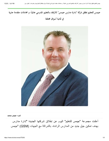 ﺔﻳرﺎﺟ ﺔﻣﺪﻘﺘﻣ تثادﺎﳏ و ؛ﺎﻴﳌﺎﻋ ﻲﺳرﺪﳌا ﻢﻴﻠﻌﺘﻟبا ءﺎﻘﺗرﻼﻟ ”ﺲﻤﻴﺟ سراﺪﻣ ةرادإ” ﺔﻛﺮﺷ ﻖﻠﻄﺗ ﻢﻴﻠﻌﺘﻠﻟ ﺲﻤﻴﺟ