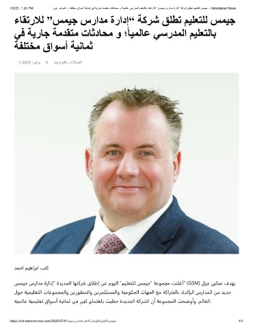 ﺲﻤﻴﺟ سراﺪﻣ ةرادإ“ ةﺪﻳﺪﺠﻟا ﺎﻬﺘﻛرش قالﻃإ ﻦﻋ مﻮﻴﻟا ”ﻢﻴﻠﻌﺘﻠﻟ ﺲﻤﻴﺟ“ ﺔﻋﻮﻤﺠﻣ ﺖﻨﻠﻋأ” (GSM) ٍ ﻞﻴﺟ ﻦﻴﻜﻤﺗ فﺪﻬﺑ