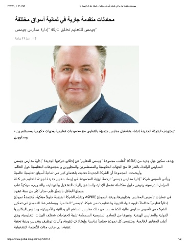 ﺲﻤﻴﺟ سراﺪﻣ ةرادإ“ ةﺪﻳﺪﺠﻟا ﺎﻬﺘﻛرش قالﻃإ ﻦﻋ ”ﻢﻴﻠﻌﺘﻠﻟ ﺲﻤﻴﺟ“ ﺔﻋﻮﻤﺠﻣ ﺖﻨﻠﻋأ” (GSM) ﻦﻣ ﺪﻳﺪﺟ ٍ ﻞﻴﺟ ﻦﻴﻜﻤﺗ فﺪﻬﺑ