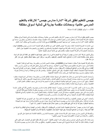.ةفلتخم قاوسأ ةينامث يف ةيراج ةمدقتم تاثداحمو ؛ًايملاع يسردملا ميلعتلاب ءاقترلال ”سميج سرادم ةرادإ“ ةكرش قلطت ميلعتلل سميج