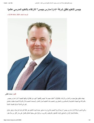 7/2/25, 1:24 PM موﯾﻟا مﻟﺎﻌﻟا – ﺎًﯾﻣﻟﺎﻋ ﻲﺳردﻣﻟا مﯾﻠﻌﺗﻟﺎﺑ ءﺎﻘﺗرﻼﻟ ”سﻣﯾﺟ سرادﻣ ةرادإ“ ﺔﻛرﺷ ﻖﻠطﺗ مﯾﻠﻌﺗﻠﻟ سﻣﯾﺟ