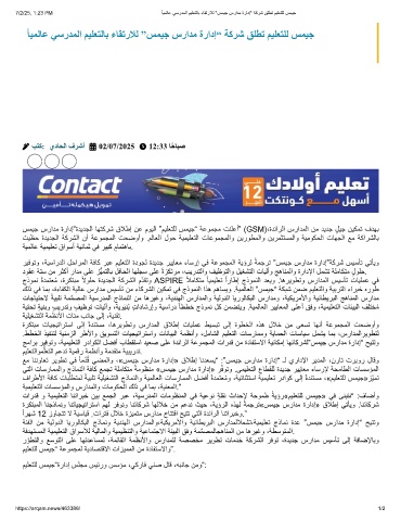 7/2/25, 1:23 PM ً ﺎﯾﻣﻟﺎﻋ ﻲﺳردﻣﻟا مﯾﻠﻌﺗﻟﺎﺑ ءﺎﻘﺗرﻼﻟ "سﻣﯾﺟ سرادﻣ ةرادإ" ﺔﻛرﺷ ﻖﻠطﺗ مﯾﻠﻌﺗﻠﻟ سﻣﯾﺟ
