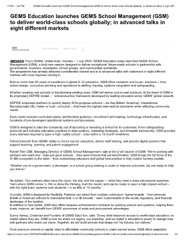 https://menafn.com/1109744874/GEMS-Education-launches-GEMS-School-Management-GSM-to-deliver-world-class-schools-globally-in-advanced-tal… 1/2