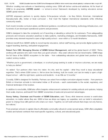 7/2/25, 1:52 PM GEMS Education launches GEMS School Management (GSM) to deliver world-class schools globally; in advanced talks in eight diff…