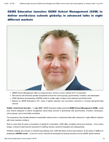 7/2/25, 1:52 PM GEMS Education launches GEMS School Management (GSM) to deliver world-class schools globally; in advanced talks in eight diff…