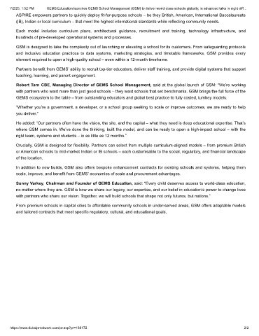 7/2/25, 1:52 PM GEMS Education launches GEMS School Management (GSM) to deliver world-class schools globally; in advanced talks in eight diff…