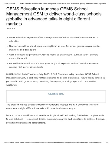 https://mid-east.info/gems-education-launches-gems-school-management-gsm-to-deliver-world-class-schools-globally-in-advanced-talks-in-eight-differ… 1/4