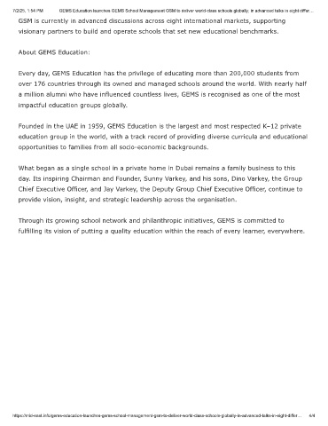https://mid-east.info/gems-education-launches-gems-school-management-gsm-to-deliver-world-class-schools-globally-in-advanced-talks-in-eight-differ… 4/4