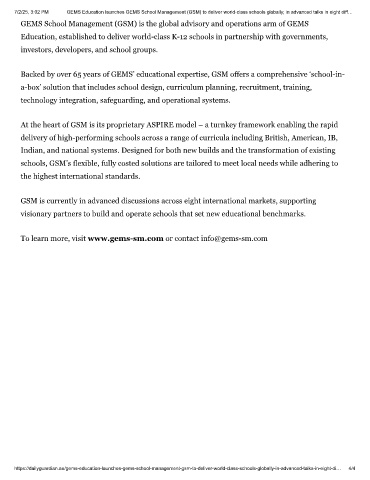 https://dailyguardian.ae/gems-education-launches-gems-school-management-gsm-to-deliver-world-class-schools-globally-in-advanced-talks-in-eight-di… 4/4