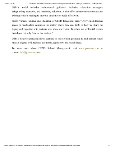 https://gulfdailymail.com/gems-education-launches-global-school-management-arm-to-build-turnkey-k-12-schools/ 2/2