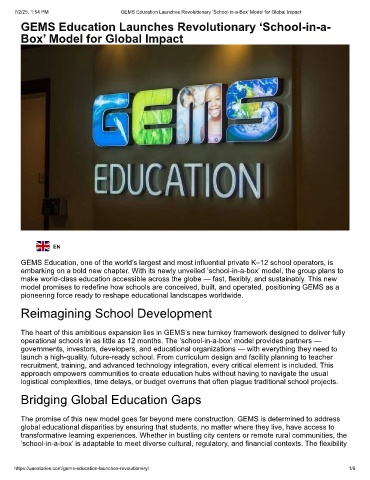 7/2/25, 1:54 PM GEMS Education Launches Revolutionary ‘School-in-a-Box’ Model for Global Impact