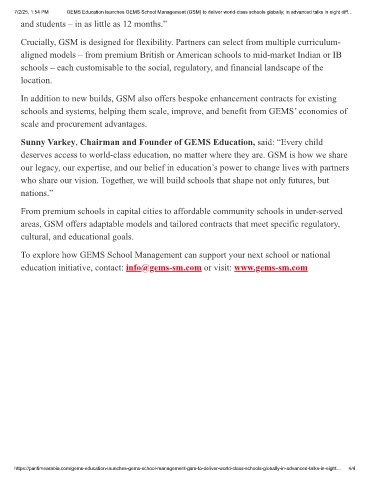 7/2/25, 1:54 PM GEMS Education launches GEMS School Management (GSM) to deliver world-class schools globally; in advanced talks in eight diff…