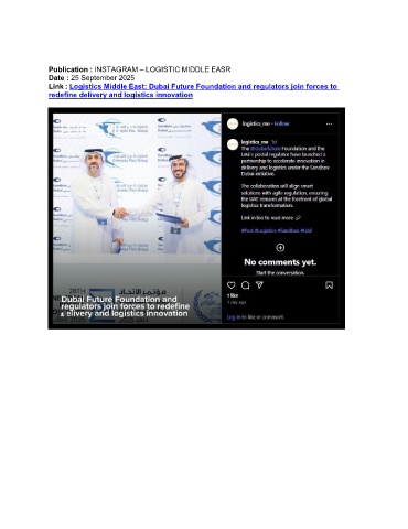 Link : Logistics Middle East: Dubai Future Foundation and regulators join forces to
