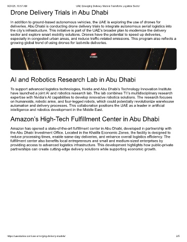 deliveries. Abu Dhabi is conducting drone delivery trials to integrate autonomous aerial logistics into