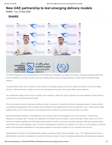 9/24/25, 10:58 AM New UAE partnership to test emerging delivery models