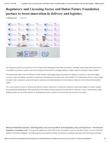 9/24/25, 10:58 AM Regulatory and Licensing Sector and Dubai Future Foundation partner to boost innovation in delivery and logistics - Middle East N…