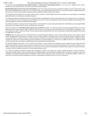 9/22/25, 1:18 PM UAE Leads Dubai Strategy and Assumes Chairmanship of the UPU Council of Administration