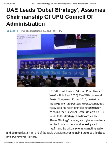 9/22/25, 1:20 PM UAE Leads Dubai Strategy, Assumes Chairmanship Of UPU Council Of Administration - UrduPoint