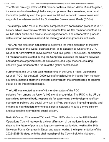 9/22/25, 1:20 PM UAE Leads Dubai Strategy, Assumes Chairmanship Of UPU Council Of Administration - UrduPoint