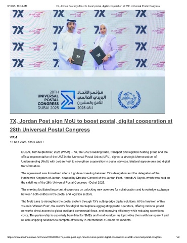 9/17/25, 10:31 AM 7X, Jordan Post sign MoU to boost postal, digital cooperation at 28th Universal Postal Congress