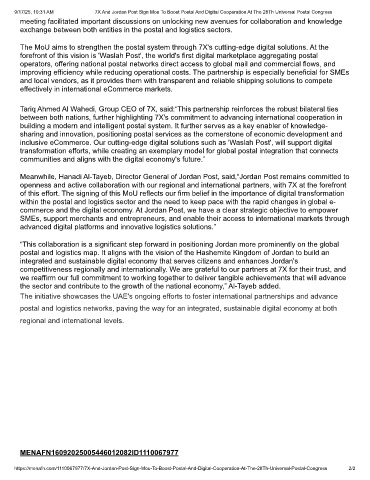 9/17/25, 10:31 AM 7X And Jordan Post Sign Mou To Boost Postal And Digital Cooperation At The 28Th Universal Postal Congress