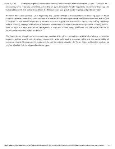 9/18/25, 1:31 PM Postal Sector Regulatory Committee holds ‘Customer Council’ on sidelines of 28th Universal Postal Congress – Dubai 2025 - Biz T…