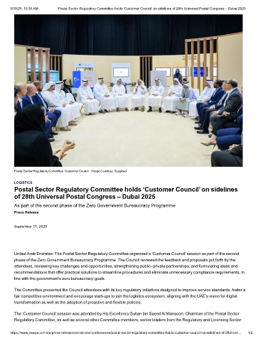 https://www.zawya.com/en/press-release/events-and-conferences/postal-sector-regulatory-committee-holds-customer-council-on-sidelines-of-28th-uni… 1/2