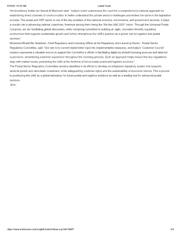environment that supports sustainable growth and further strengthens the UAE’s position as a global hub for logistics and postal